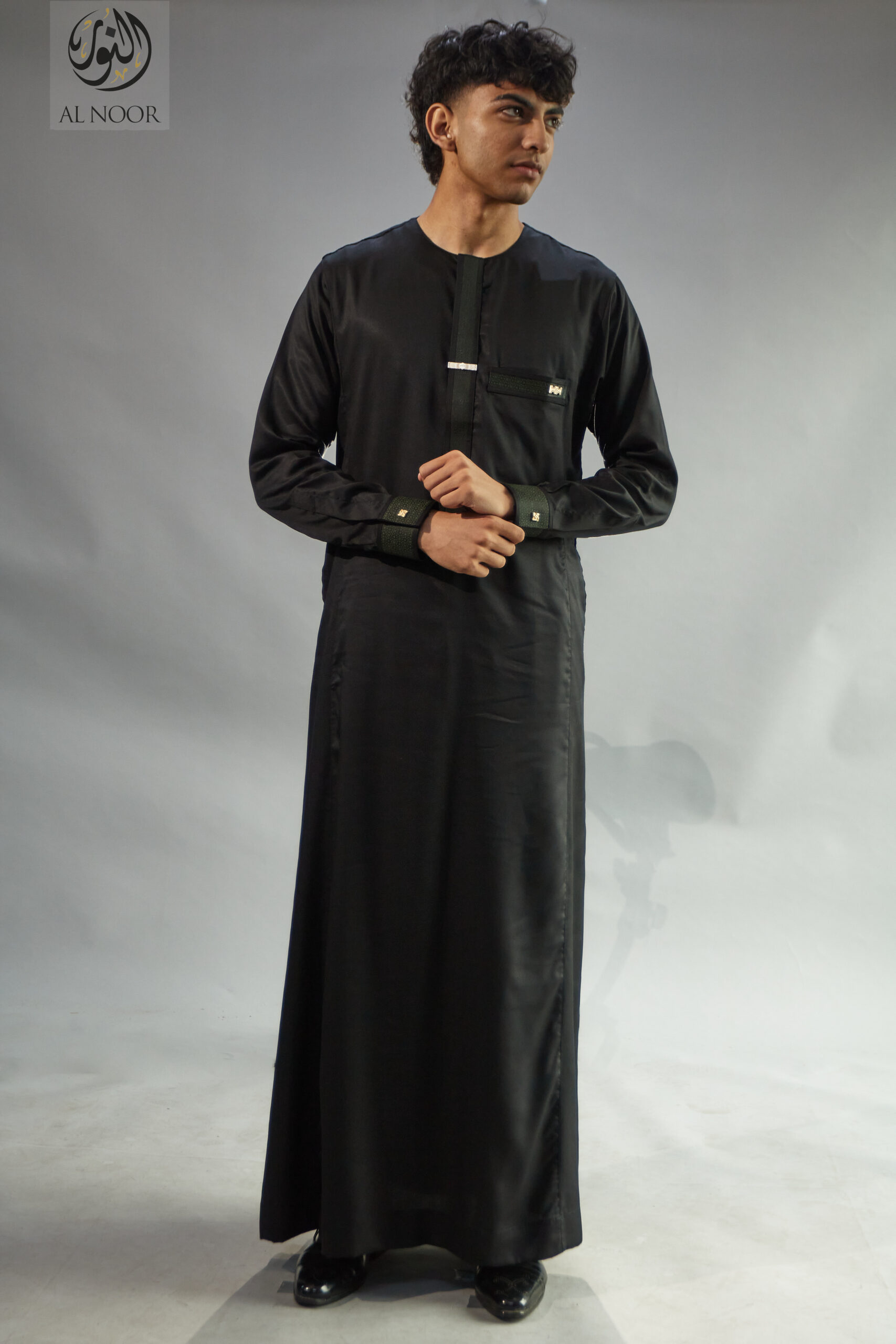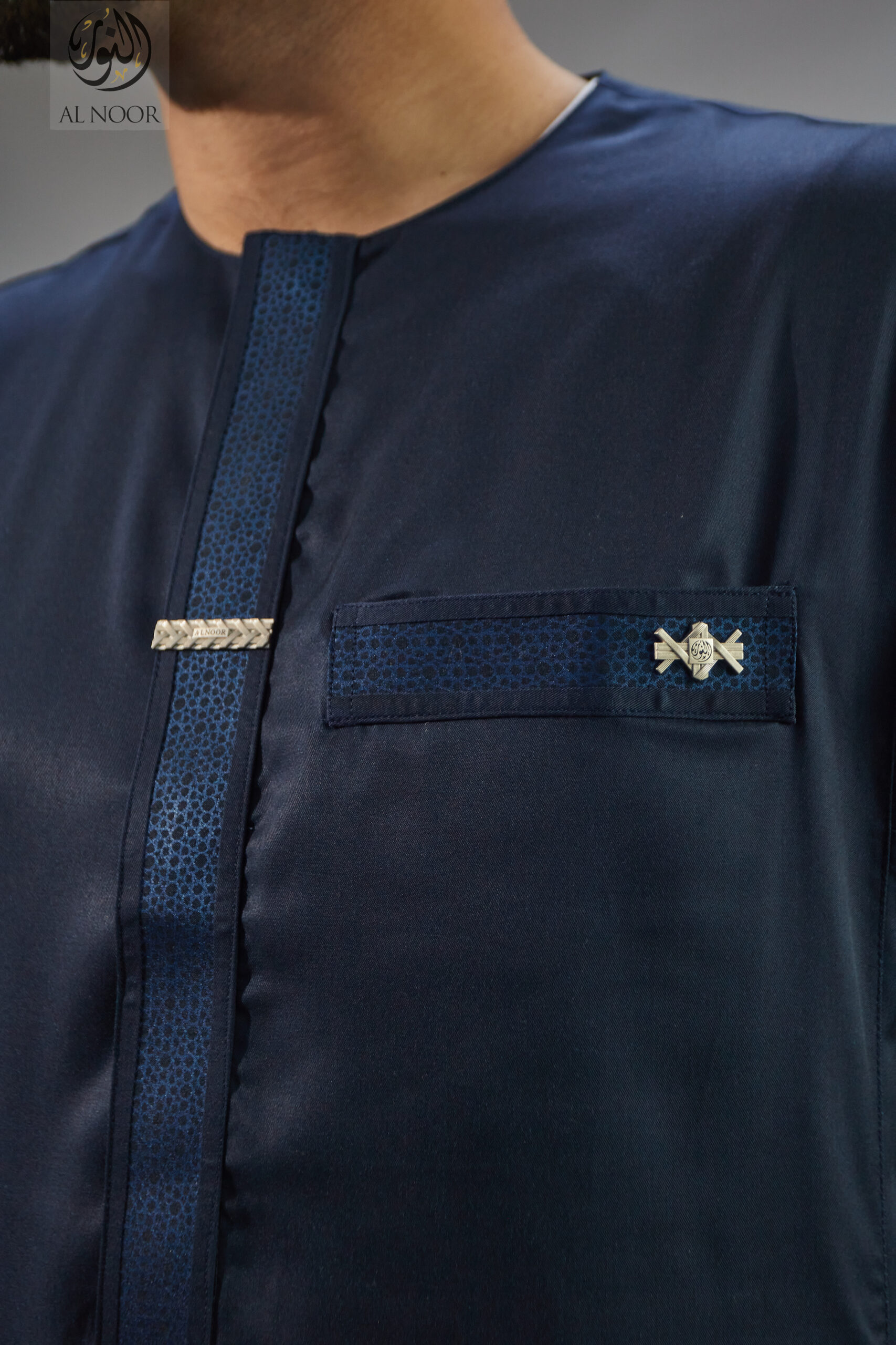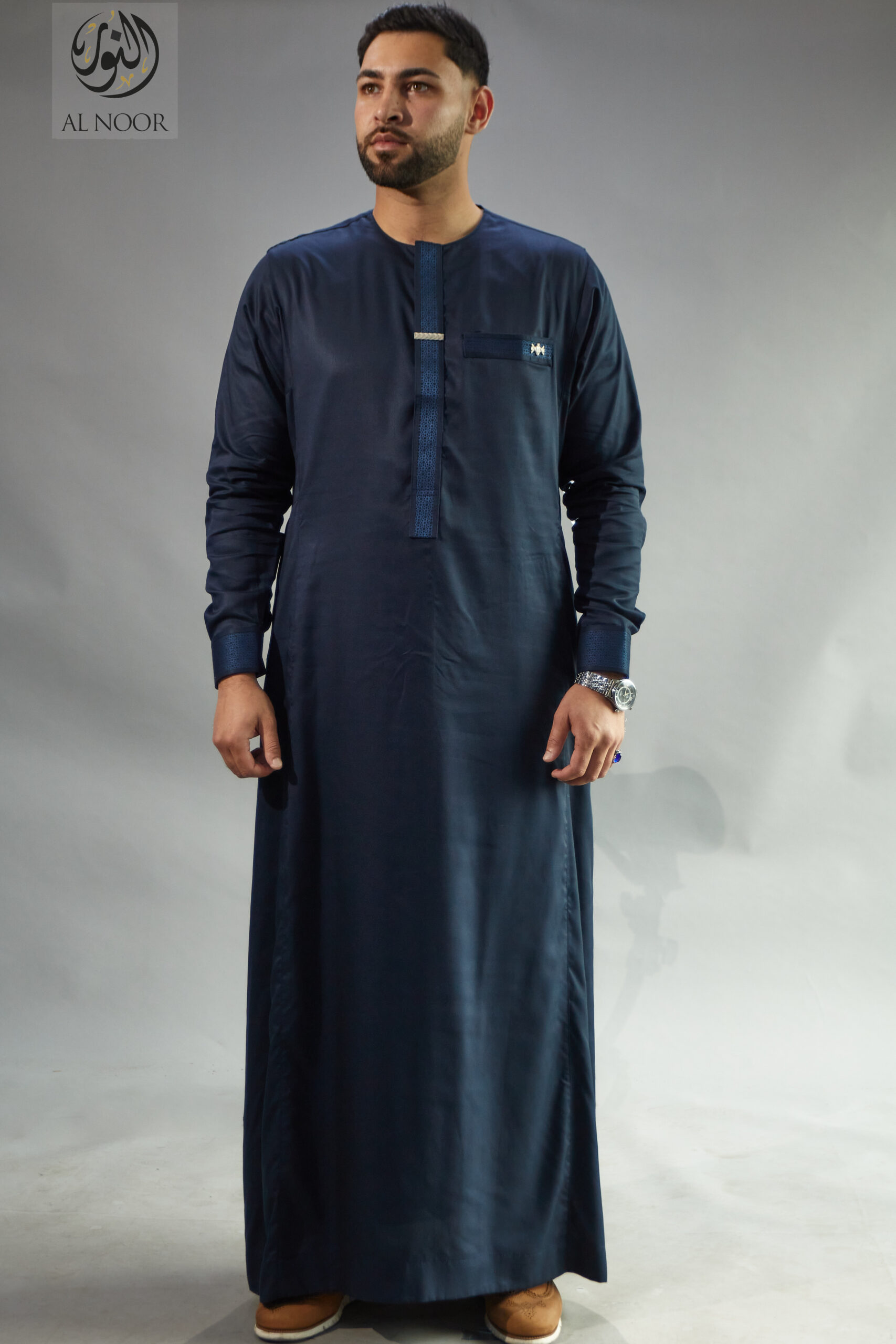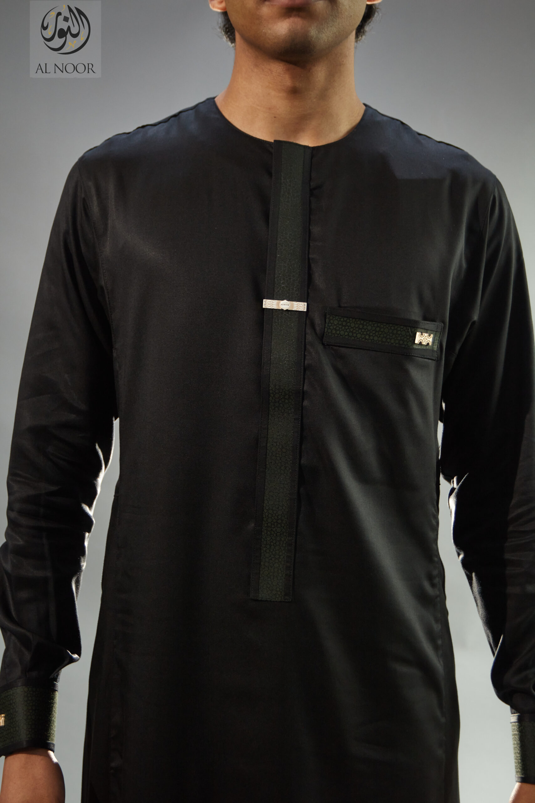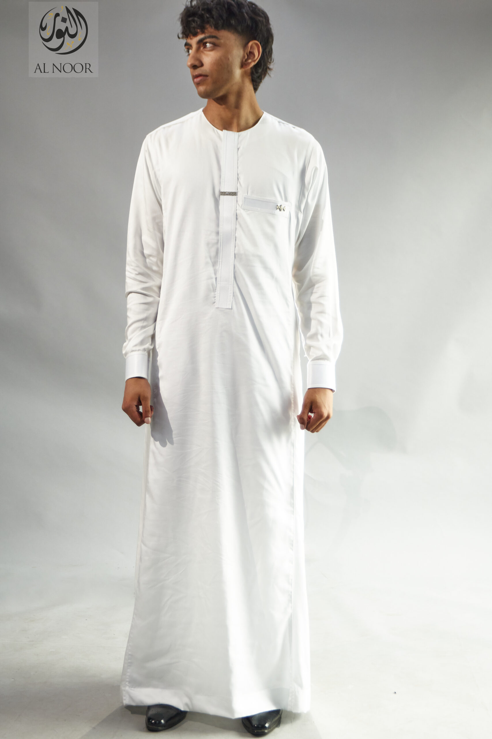 Al Noor Premium collarless Thobes with textured cuff & placket featuring an Al Noor signature metal tag